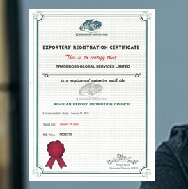 Tradeboss Global Services Ltd is duly registered and has obtained all government licenses for mining and exporting of Minerals & Agricultural Products